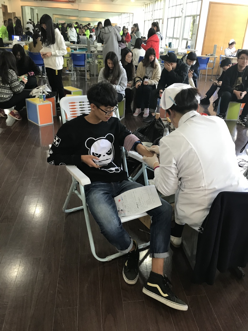 11月23日上午,校医务室联合宝山区红十字会在校体艺楼舞蹈房展进行以“爱心彰显青春之美,用奉献引领时尚之路”为主题的献血活动,掀起一场无偿献血的爱心热潮。