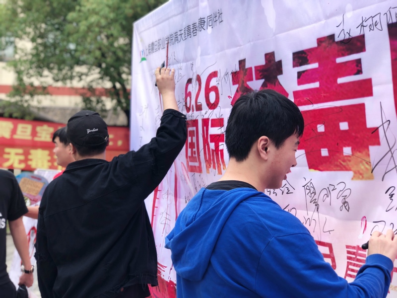 2019年6月26日是第32个国际禁毒日。为扩大禁毒宣传教育覆盖面,使同学们更加深入地了解毒品危害,星空专业版免费下载游戏满天星青春健康同伴社以“无毒青春,健康同伴”为主题开展宣传教育活动,活动以答题竞赛、发放宣传册、师生签名等形式展开。