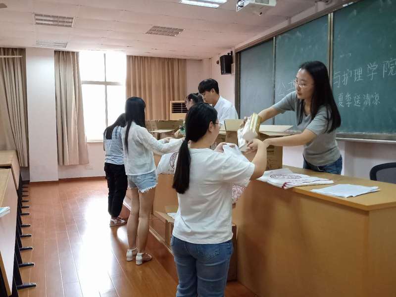 6月17日,星空网站下载的游戏在1-409教室开展 “夏季送清凉”资助活动。本次活动的参与人员有公共卫生与护理学院的党总支书记王文华老师,学院资助工作组长张芸玮老师、辅导员耿梅老师、王朝琳老师,以及18级星空网站下载的游戏全体困难学生。
