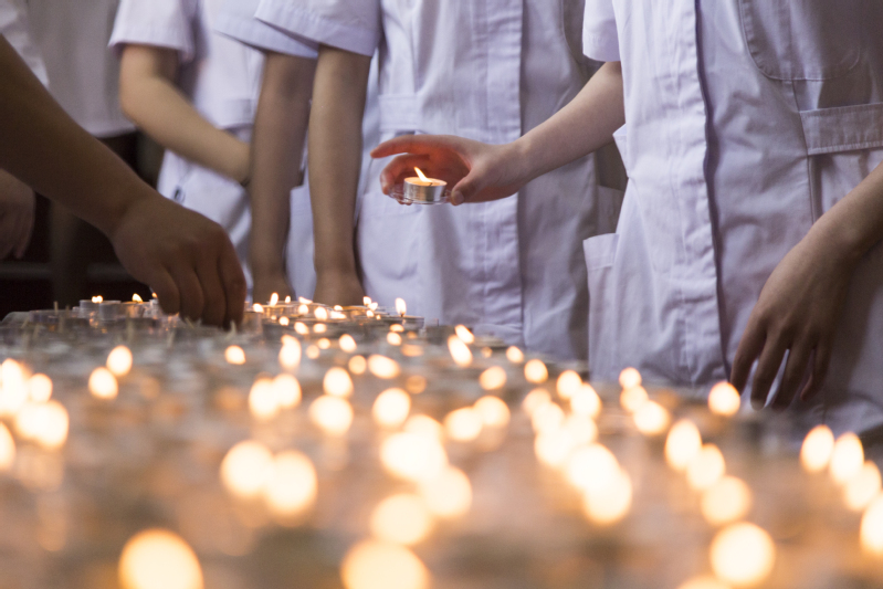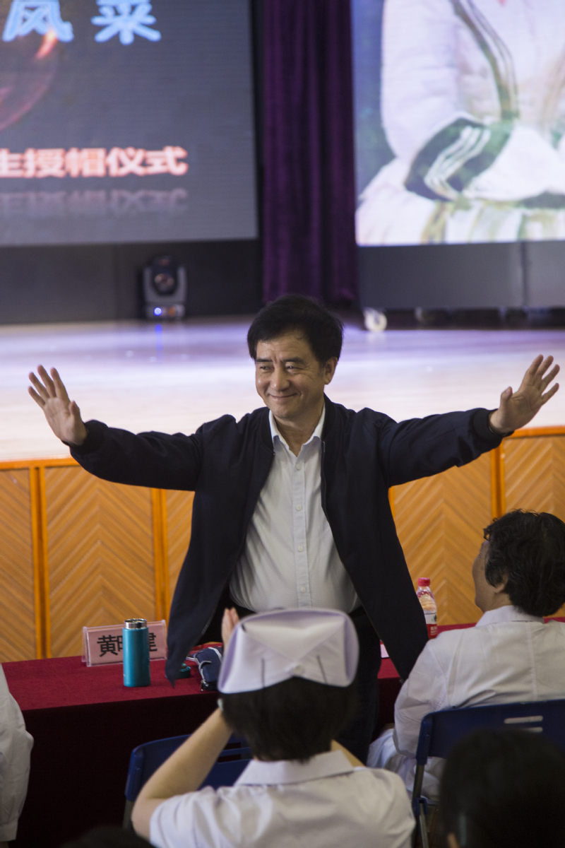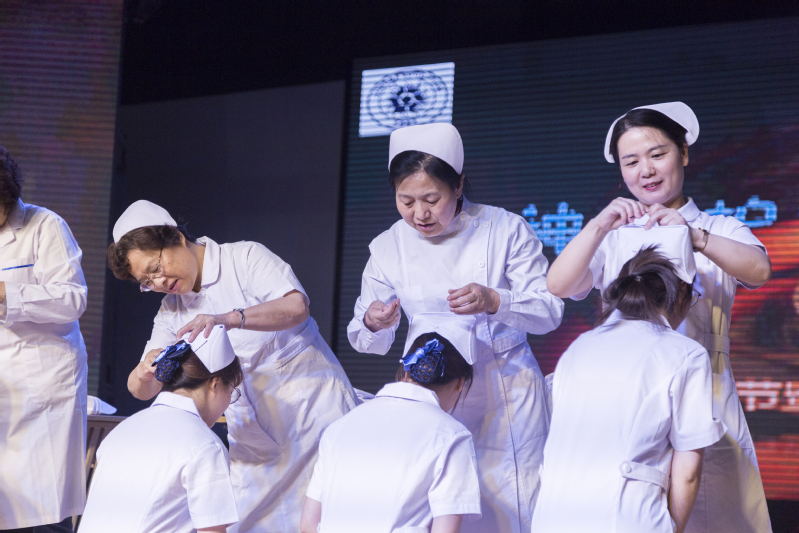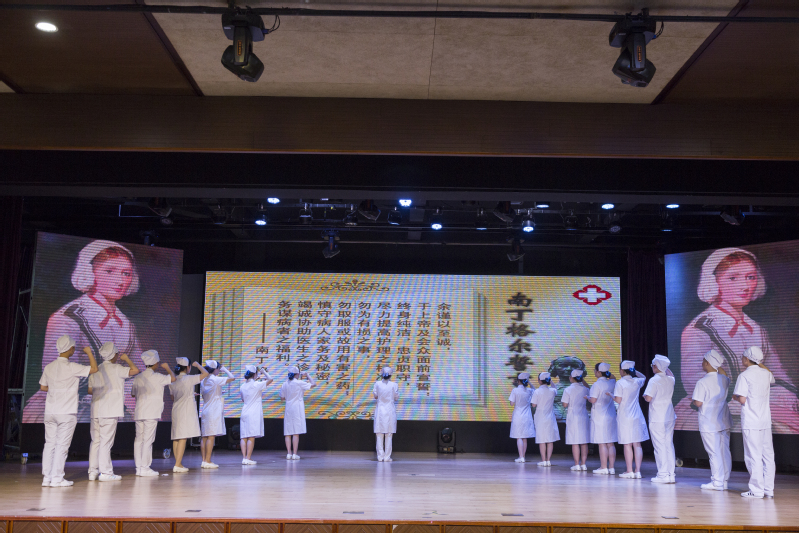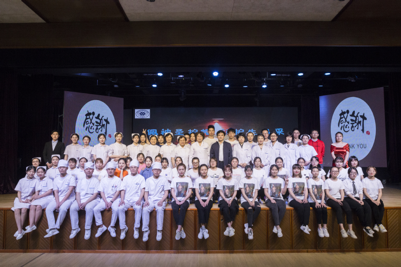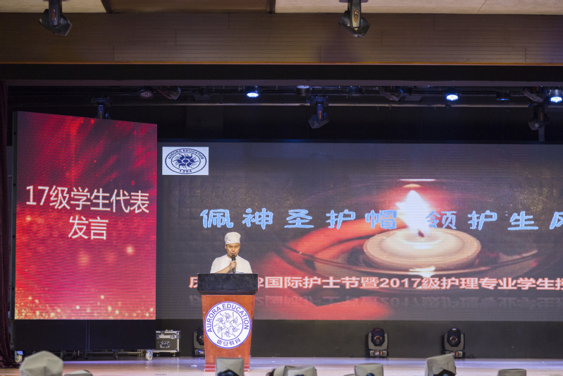 紧接着诗朗诵节目开始。我们坚信自己会一直发扬“燃烧自己,照亮别人”的南丁格尔精神!其后校长致词,表达了对护理学子们的殷切希望和深深祝福。17级学生代表17护理5班俞洁、17护理1班陈昱明依次发表讲话,发言内容:护理是一门强调动手能力的学科,临床操作十分重要,与病人的沟通、“三查七对”的原则是临床的重中之重,虚心求教是我们应该遵守的基本素养,“活到老,学到老”是我们的目标。在此,再次对引导、教导我们的老师表达由衷的感谢以及节日的祝福。