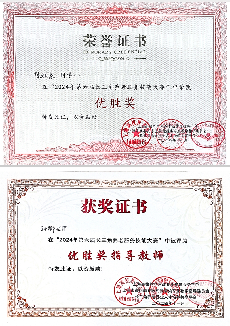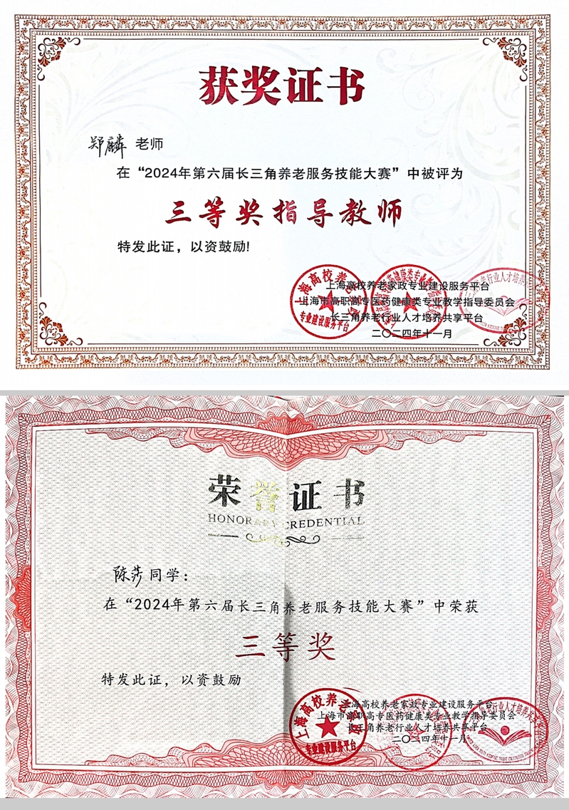 在第六届长三角养老服务技能大赛中,我校星空网站下载的游戏陈莎同学荣获三等奖,陈炫辰同学荣获优胜奖。